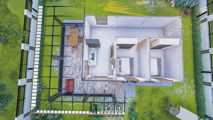แบบบ้านหน้ากว้างทรงโมเดิร์นหลังนี้ประกอบไปด้วย 2 ห้องนอน 1 ห้องโถงกว้าง พร้อมกับเฉลียงูปตัวแอลที่มีพื้นที่กว้างเป็นพิเศษ หากเพื่อน ๆ ต้องการข้อมูลอื่น ๆ เพิ่มเติม สามารถติดต่อสอบถามได้จากช่องทางติดต่อด้านล่างนี้ได้เลยครับ