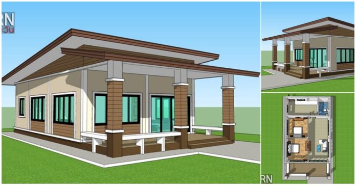 สวัสดีค่ะเพื่อนๆ ชาวเว็บ ในบ้าน ทุกท่าน วันนี้เรามี แบบบ้านสไตล์โมเดิร์น มาฝากค่ะ เป็นบ้านชั้นเดียวขนาด 6×11 เมตร ตัวบ้านออกแบบในรูปทรงเหลี่ยม โดดเด่นด้วยหลังคาเพิงหมาแหงน สะท้อนเอกลักษณ์บ้านสมัยใหม่ พร้อมพื้นที่พักผ่อนนอกบ้าน เราลองไปชมกันเลยดีกว่าค่ะ