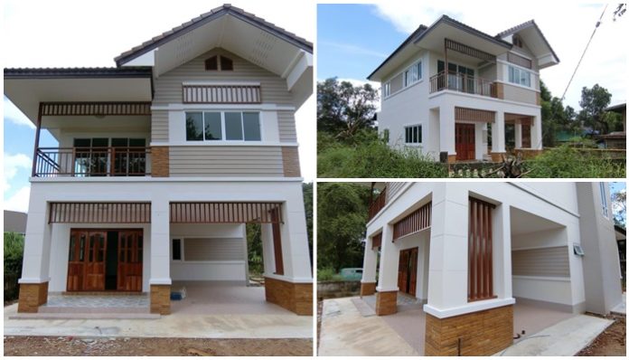 บ้านหลังนี้เป็นของ คุณปัญจพล ผลงานการก่อสร้างจาก Modern Tage House & Design โดยตัวบ้านจะมีสองชั้น ตกแต่งผนังด้านหน้าด้วยโทนสีขาวและไม้สีอ่อน พร้อมหลังคาทรงปั้นหยาสีอิฐ