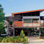 พื้นที่รอบบ้านมีเฉลียงพื้นไม้ล้อมอยู่ ตกแต่งฝ้าเฉลียงด้วยงานไม้ เป็นองค์ประกอบที่เชื่อมบรรยากาศนอกบ้านและภายในตัวบ้านเข้าด้วยกันอย่างแยบยล