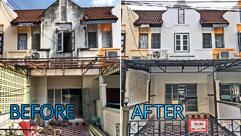 ทาสีบ้านใหม่ทั้งหลังและเก็บรายละเอียดที่เหลือ ใช้เวลาในการซ่อม 1เดือน งบประมาณ xxx …ภาพก่อน-หลังการปรับปรุงทาวน์เฮาสน์ให้เช่าที่อ่าวอุดม
