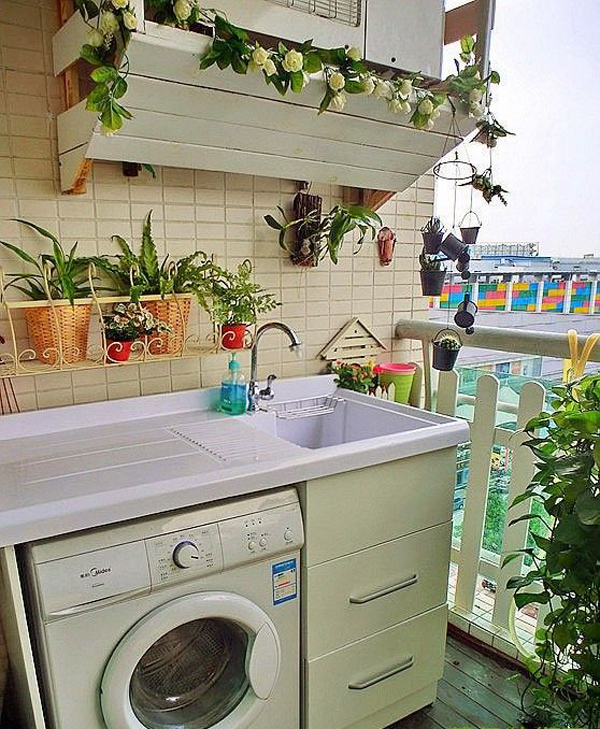 อีกสิ่งหนึ่งที่ไม่ควรมองข้ามสำหรับการตกแต่งระเบียงซักล้างก็คือความเป็นธรรมชาติ คุณสามารถเลือกต้นไม้หรือพืชประดับได้หลายแบบ ไม่ว่าจะเป็นพืชแขวนผนัง กระถางต้นไม้วางพื้น กระถางขนาดเล็กบนชั้นวาง พืชเลื้อย พืชแขวน ฯลฯ