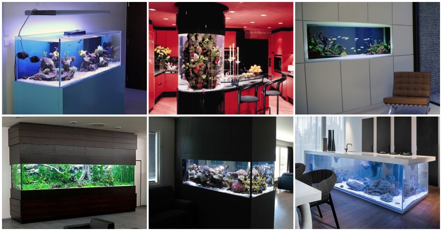 ไอเดียครั้งนี้ จะอยู่ในรูปแบบโมเดิร์น ตู้ปลาทรงสี่เหลี่ยม ตกแต่งด้วยไผสีที่ต้องการ มักจะใช้สีน้ำเงิน หรือเขียว เพื่อเลียนแบบสีของน้ำทะเล และความสวยงาม ดูสบายตา