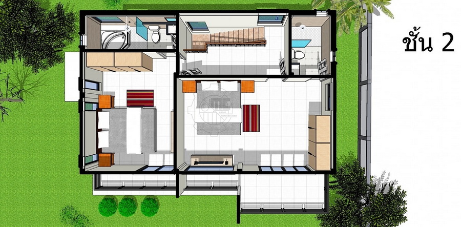 แบบบ้านสไตล์โมเดิร์นขนาดสองชั้นหลังนี้ประกอบไปด้วย 2 ห้องนอน 3 ห้องน้ำ 1 ห้องโถงใหญ่ 1 ห้องครัว 1 ห้องซักผ้า 1 โรงจอดรถ ขนาดพื้นที่บ้าน 201 ตารางเมตร งบก่อสร้างอยู่ที่ประมาณ 2.3 ล้านบาท
