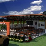 อีกสิ่งหนึ่งที่ทำให้แบบบ้านหลังนี้โดดเด่น คือ พื้นที่โรงจอดรถที่ออกแบบแยกจากตัวบ้าน มีหลังคากันสาดแบบเปิดโล่งด้านข้าง จึงสามารถจอดรถและใช้ทำกิจกรรมอื่น ๆ ได้ดี