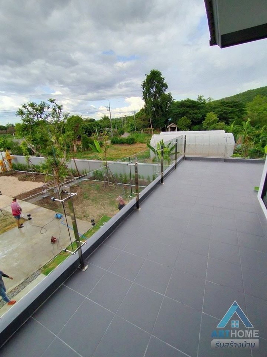 จุดเด่นของบ้านหลังนี้คือการออกแบบระเบียงกว้างบริเวณชั้นสอง พร้อมกับติดตั้งที่กันตกแบบกระจกใส จึงเป็นพื้นที่สำหรับการใช้งานด้หลากหลายตามความต้องการ