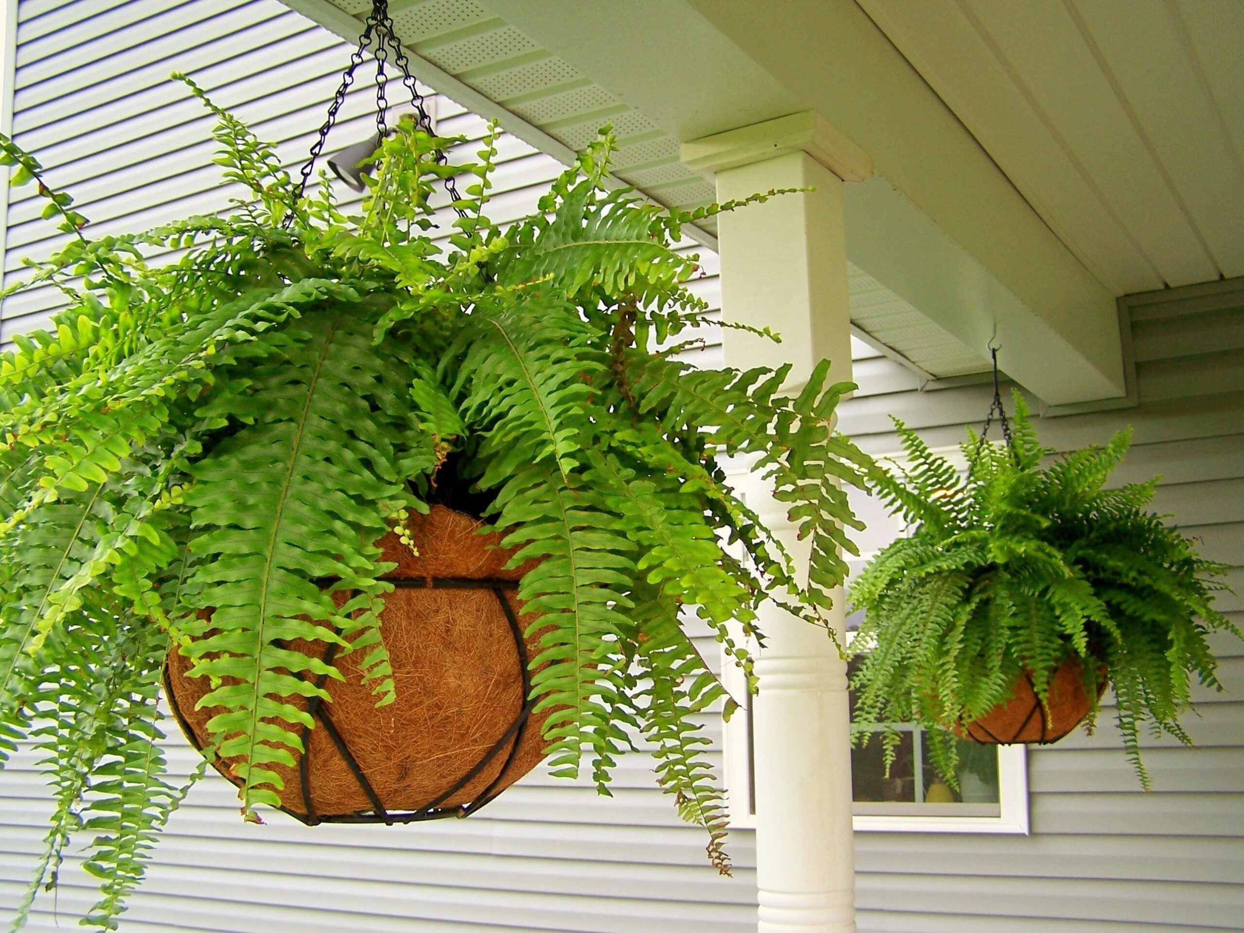 14. เฟิร์นที่ถูกแขวนไว้ด้านบนเฉลียงหน้าบ้าน