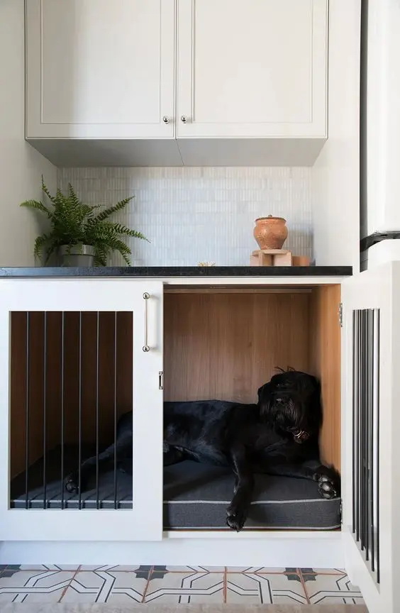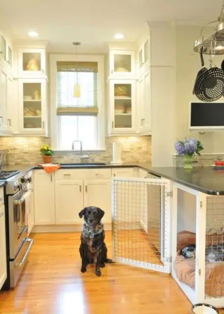 3. หากมีห้องครัวกว้าง ๆ ก็สามารถหามุมใต้เคาน์เตอร์จัดเป็นกรงให้น้องหมาได้พักผ่อนด้วยก็ได้
