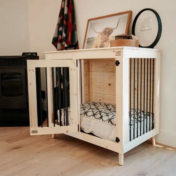 9. กรงสุนับแบบไม้ที่มีดีไซน์ที่เรียบง่าย สามารถใช้งานได้สะดวกมาก ๆ