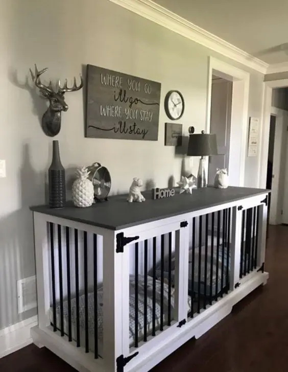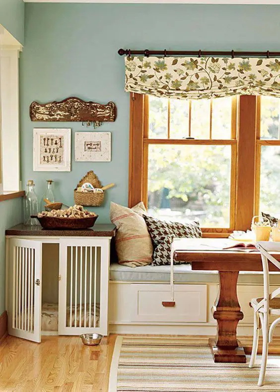 4. เปลี่ยนเคาน์เตอร์เล็ก ๆ ในห้องรับประทานอาหารเป็นกรงสุนัข ในขณะที่บนเคาน์เตอร์ก็ยังใช้งานได้ดี
