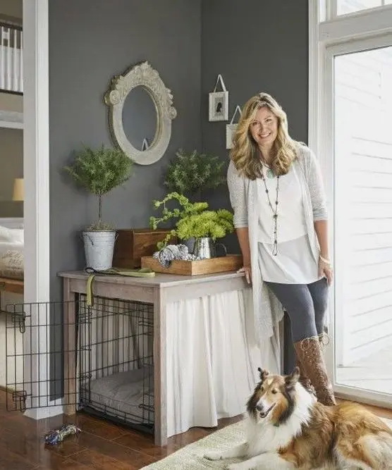 7. ไอเดียง่าย ๆ ที่เปลี่ยนพื้นที่ใต้โต๊ะเอนกประสงค์ให้เป็นที่วางกรงของน้องหมา
