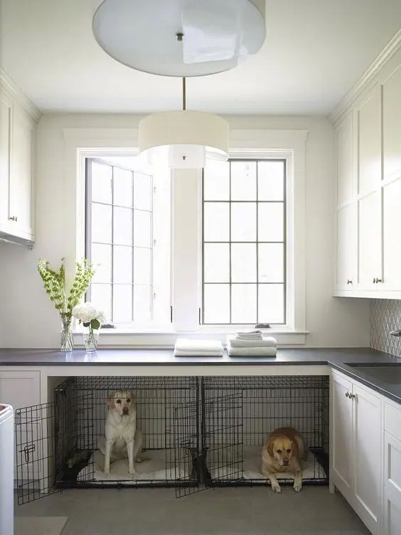 19. อีกหนึ่งไอเดียของห้องซักรีดที่มีพื้นที่สำหรับจัดวางกรงสุนัขสวย ๆ