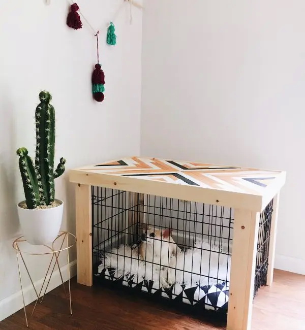 21. กรงสุนัขแบบไม้ที่ด้านบนถูกตกแต่งด้วยลวดลายเรขาคณิตที่สวยงาม