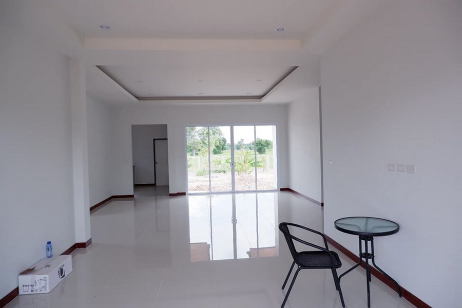 จุดเด่นของบ้านหลังนี้จะอยู่ที่เฉลียงหน้าบ้านที่ออกแบบกว้างเป็นพิเศษ เหมาะกับการใช้นั่งเล่น นั่งย่างหมูกระทะจิบเครื่องดื่มเย็น ๆ ยามอาทิตย์อัสดง