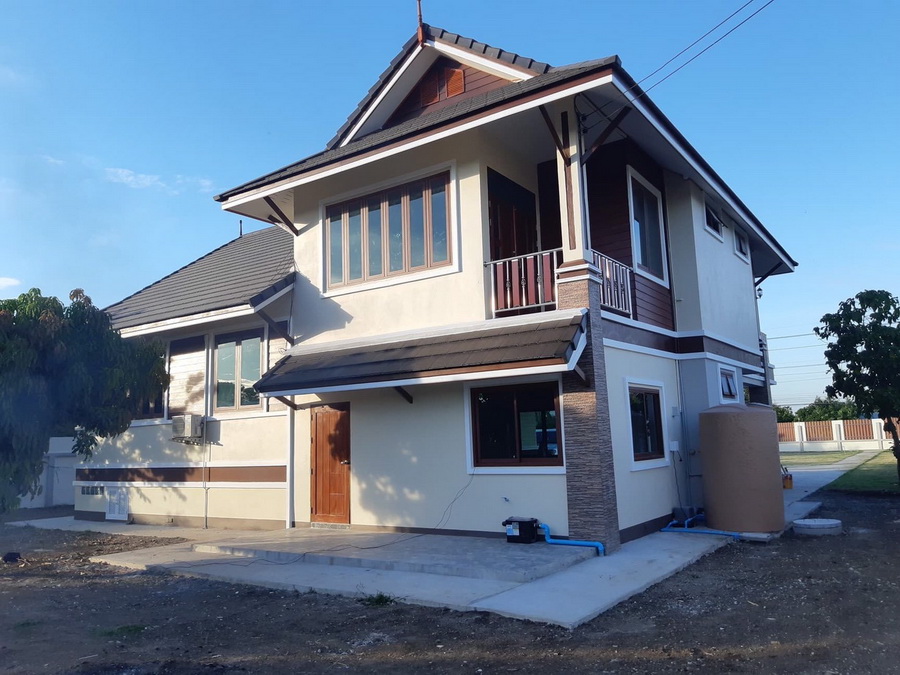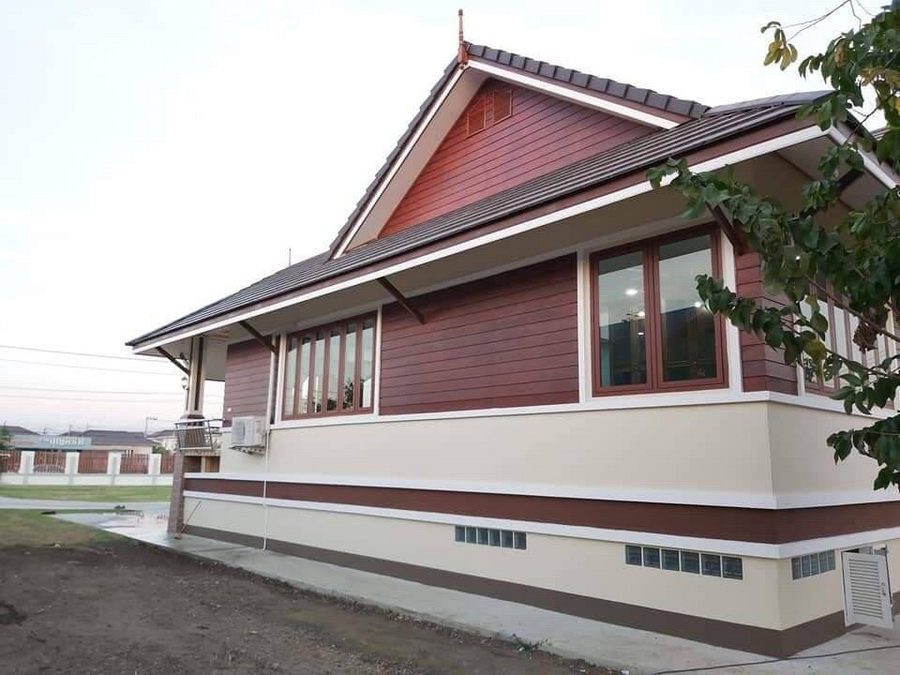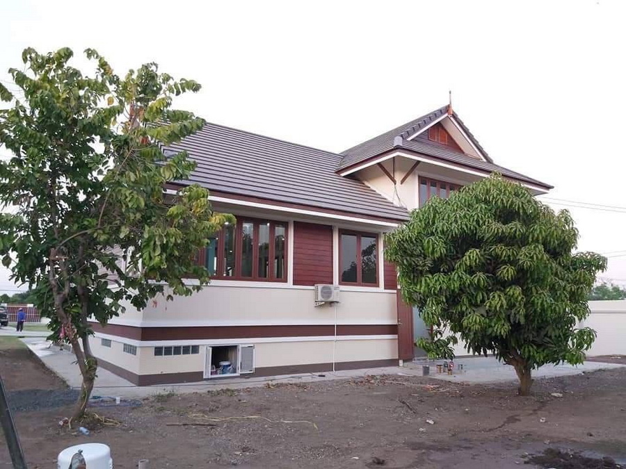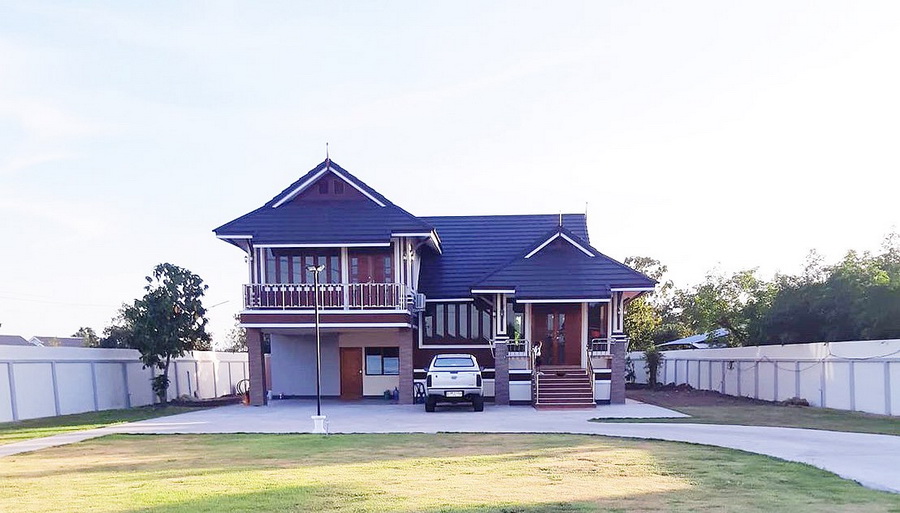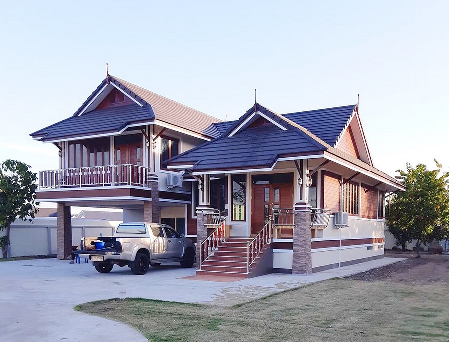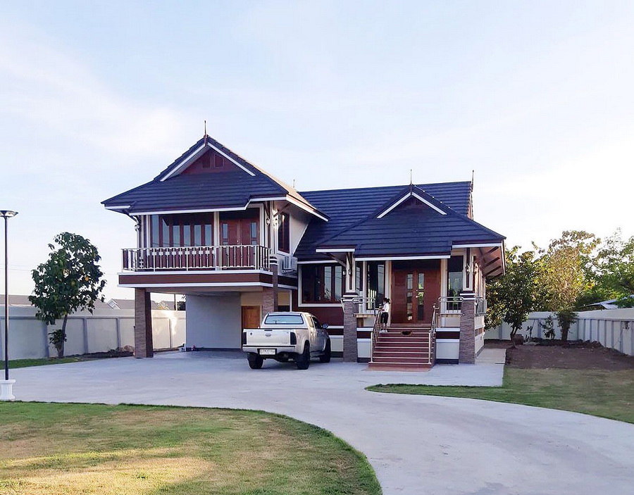 บ้านชั้นครึ่งยกพื้นสูง ทรงไทยประยุกต์ 3 ห้องนอน 3 ห้องน้ำ พร้อมที่จอดรถ พื้นที่ 215 ตร.ม.