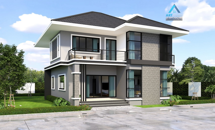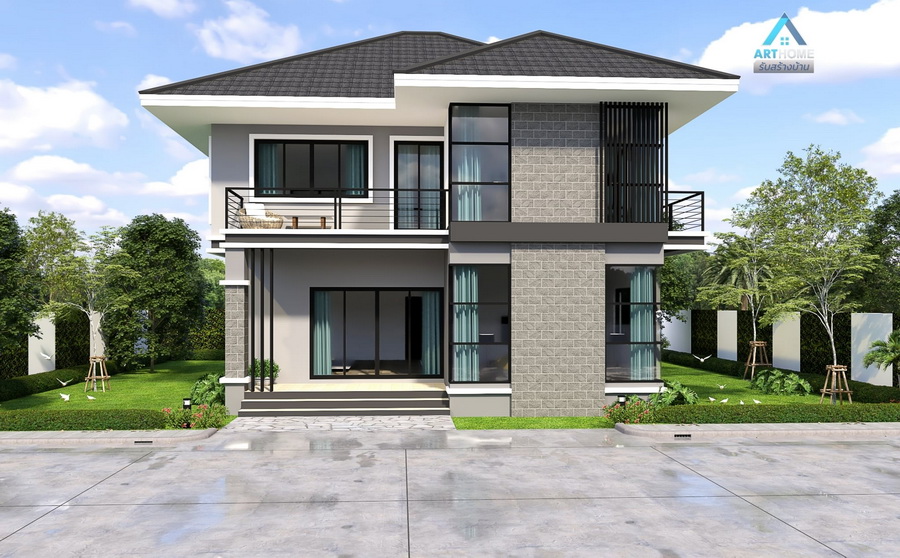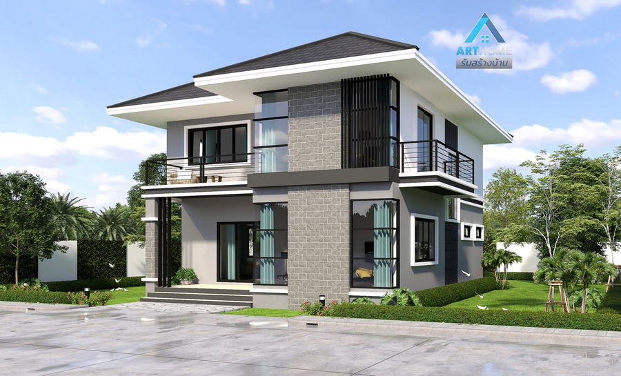 แบบบ้านสไตล์คอนเทมโพรารี ผลงานการออกแบบโดยทีมสถาปนิกจาก Art-HOME เป็นแบบบ้านหลังใหญ่ที่ออกแบบมาเพื่อรองรับครอบครัวที่ต้องการพื้นที่พักผ่อนและพื้นที่ใช้สอยที่สะดวกและกว้างขวาง เป็นอีกหนึ่งไอเดียบ้านที่มีครบถ้วนทุกฟังก์ชัน