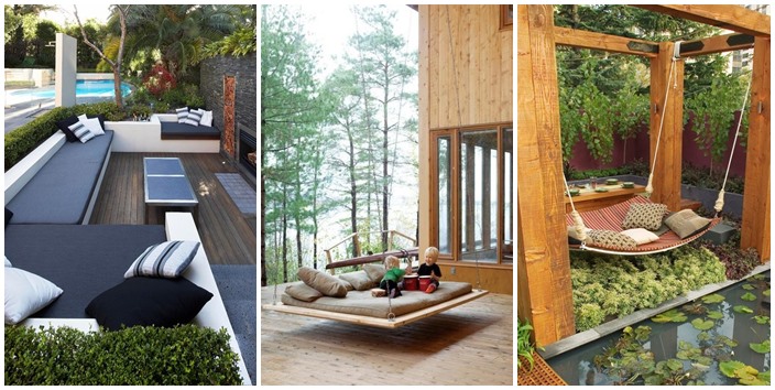 จัดให้เป็นเตียงนอนท่ามกลางสวนธรรมชาติก็ได้ ดูแปลกใหม่ ตกแต่งด้วยไม้ หิน โครงเหล็ก ให้สวยงาม