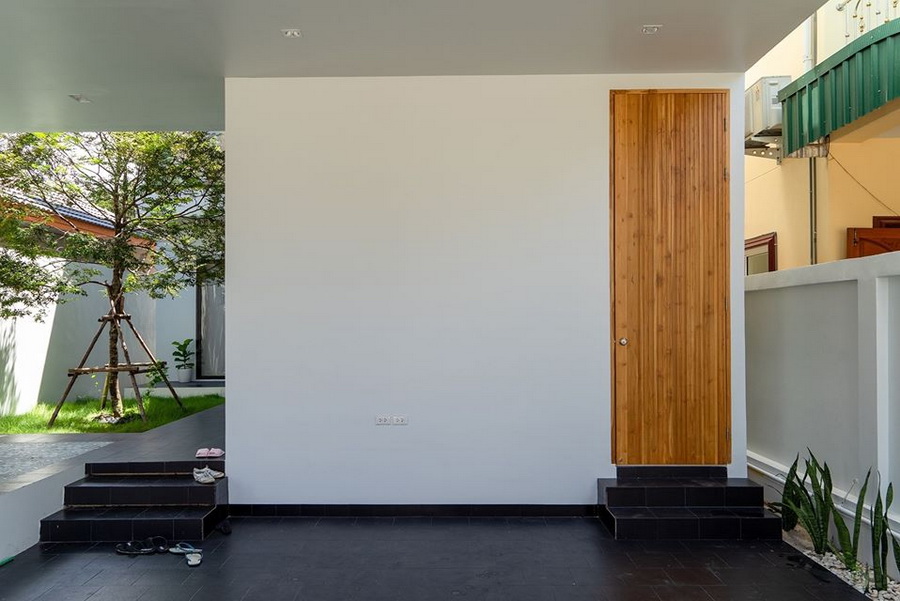 เมื่อเข้าภายในพื้นที่บ้าน เราอาจจะลองแวะไปด้านข้าง ซึ่งเป็นพื้นที่สวนหย่อมเล็ก ๆ พร้อมเฉลียงทอดยาวให้สามารถใช้เป้นมุมพักผ่อนได้อย่างดีเยี่ยม