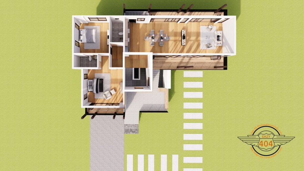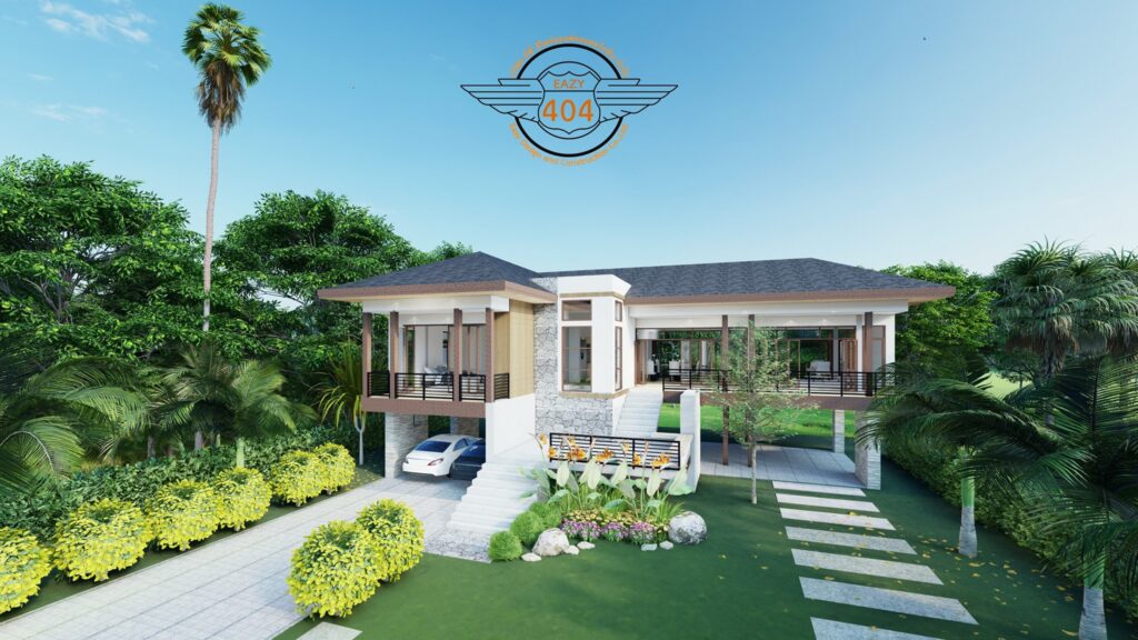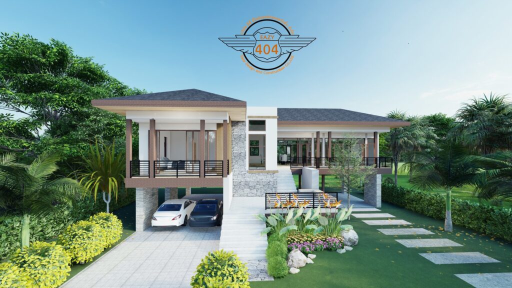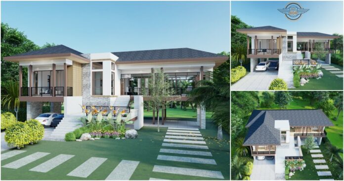 แบบบ้านใต้ถุนทรงตัวแอล ผลงานการออกแบบโดยทีมงานจากเพจ แบบบ้านสวยพร้อมก่อสร้าง Design&Construction บ้านที่มีสองเอกลักษณ์ในหนึ่งเดียว ผสมผสานพื้นฐานการออกแบบของบ้านไทยทรงใต้ถุนสมัยก่อน เข้ากับรูปแบบการแต่งบ้านแนวโมเดิร์น บนพื้นที่ใช้สอย 229 ตารางเมตร