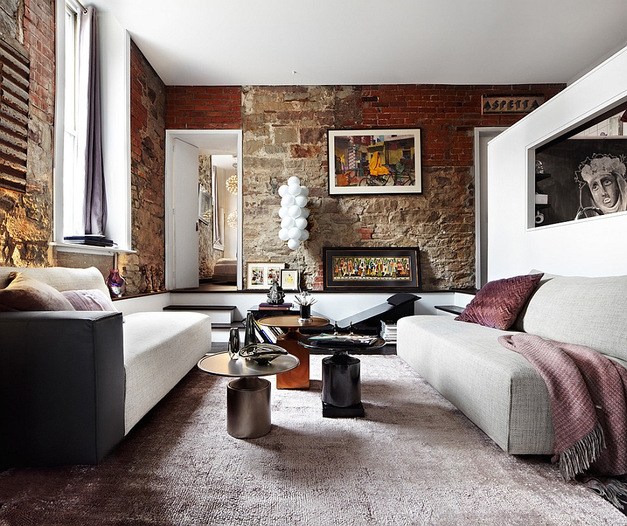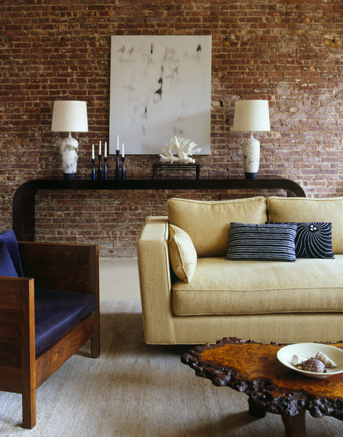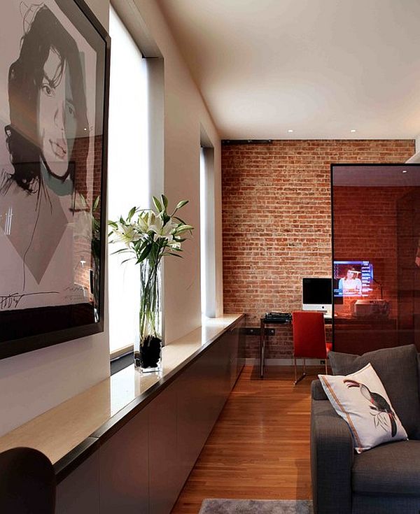 ผนังอิฐสามารถผสมผสานกับวัสดุอื่น ๆ ได้อย่างลงตัวและไม่ขัดเขินกันนัก เช่น ไม้ ปูนเปลือย กระจก กระเบื้องลายหินอ่อน ฯลฯ หรือแม้แต่ผนังสีขาวว่าง ๆ ก็เข้ากันได้ดีไม่น้อยเลยครับ