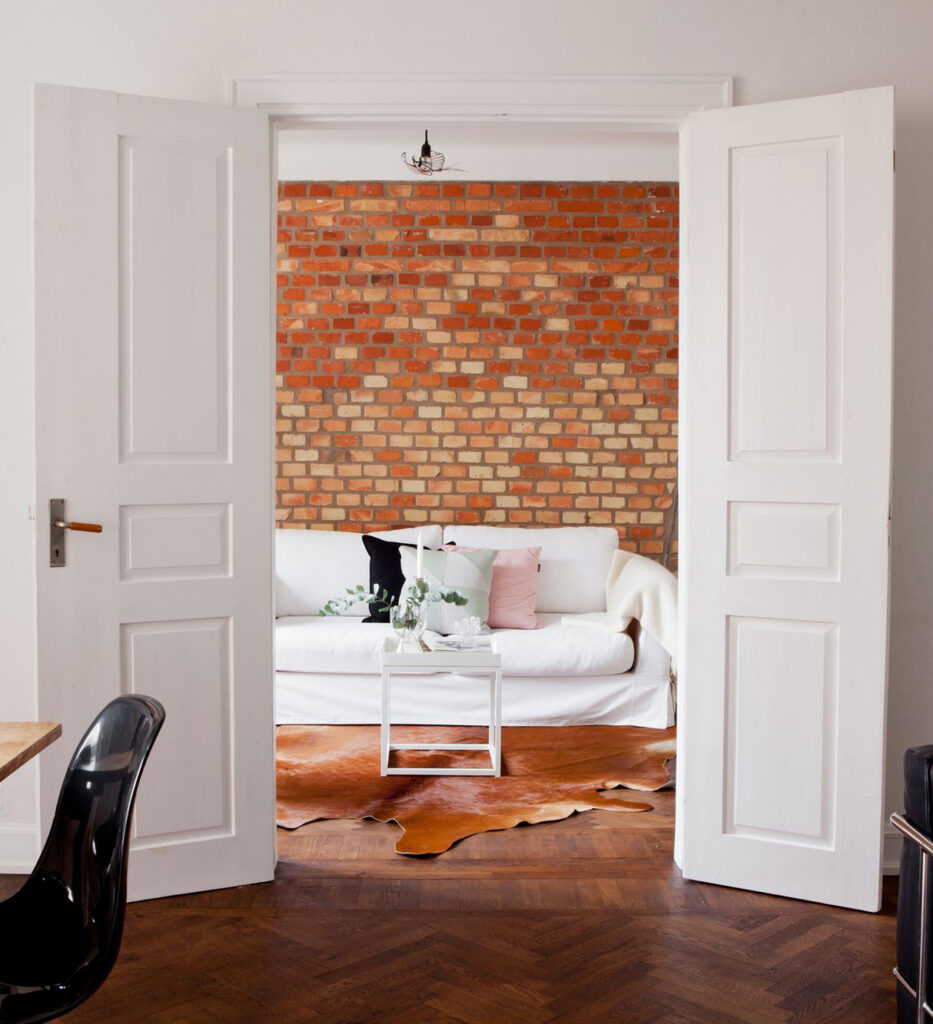 อิฐที่ใช้ตกแต่งผนังนั้น ไม่จำเป็นต้องมีสีแดงเสมอไป แต่คุณยังสามารถทาสีอื่น ๆ เพิ่มความสวยงามในรูปแบบที่คุณต้องการได้ตามชอบ แนะนำว่าสีขาวเป็นสีที่เหมาะ และให้กลิ่นอายการตกแต่งในสไตล์สแกนดิเนเวียอีกด้วยครับ