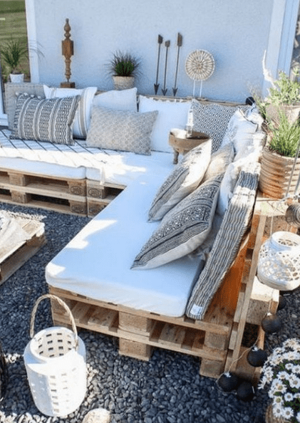 นอกจากนั้นยังมีอีกหนึ่งวัสดุที่ได้รับความนิยมเป็นอย่างมาก ซึ่งนั่นก็คือ พาเลทไม้ ที่ดัดแปลงจากแท่นวางสินค้า ราคาไม่แพง มีความแข็งแรงและสามารถรับน้ำหนักได้มาก