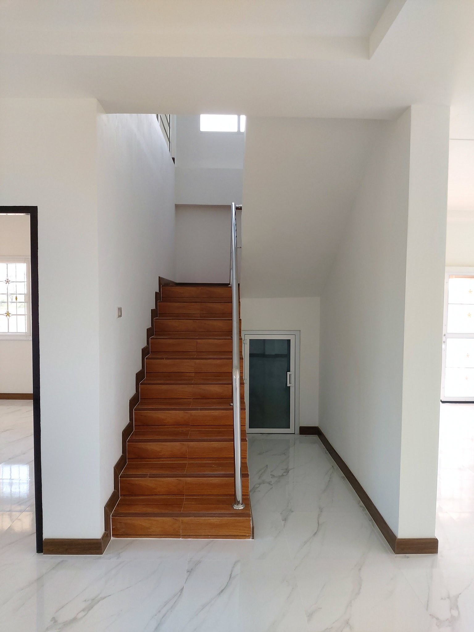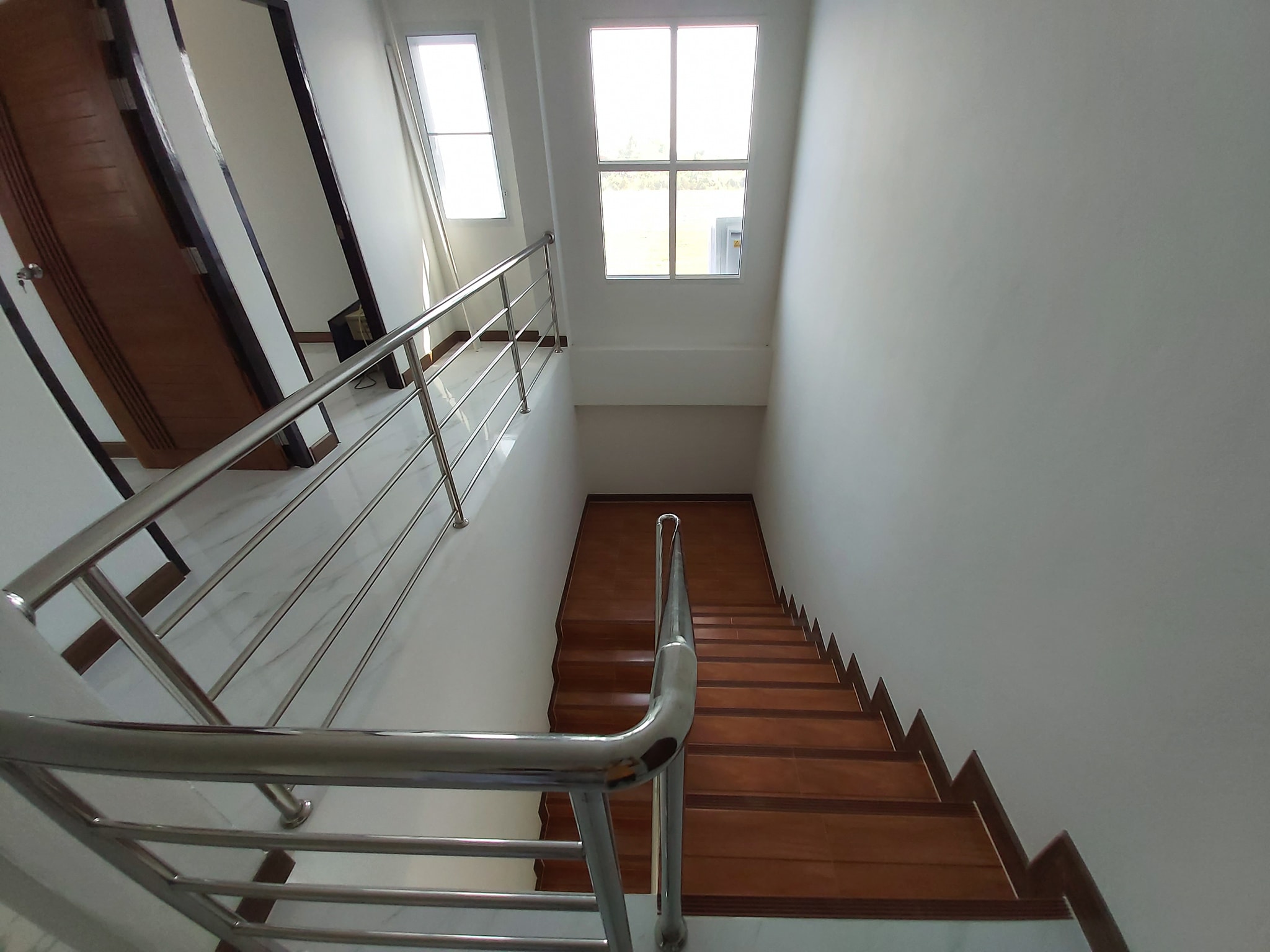 เมื่อเดินตามบันได้สีน้ำตาลแห่นี้มา ก็จะนำเราขึ้นมาสู่บริเวณชั้นสองของบ้าน ซึ่งจะเป็นพื้นที่ห้องนอนเพื่อการพักผ่อนของบ้านหลังนี้