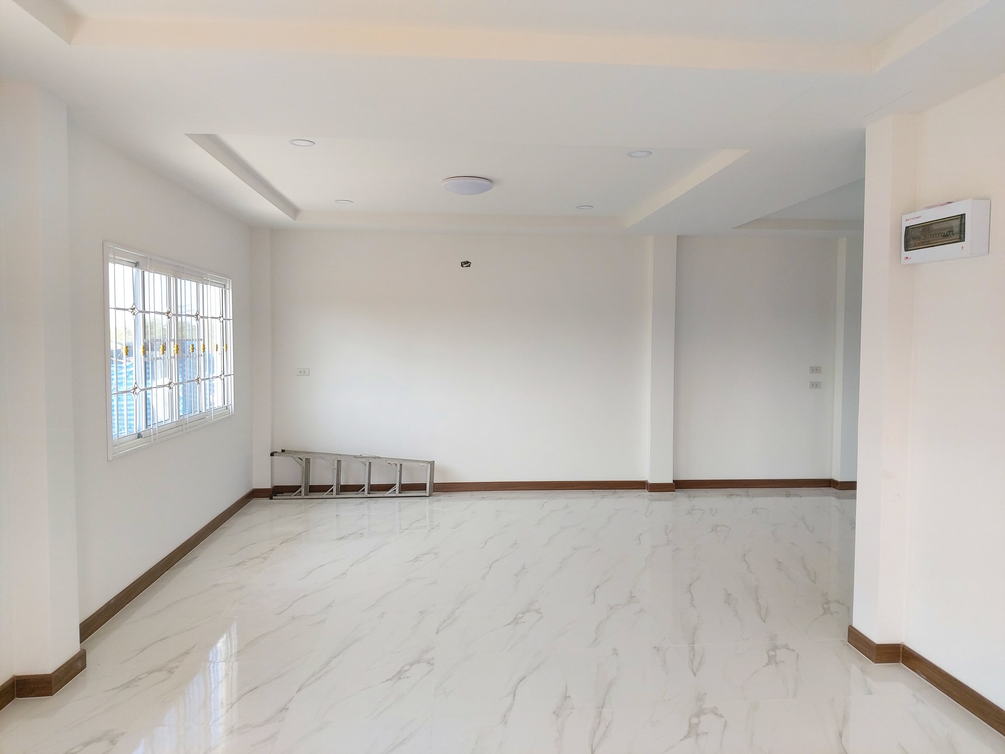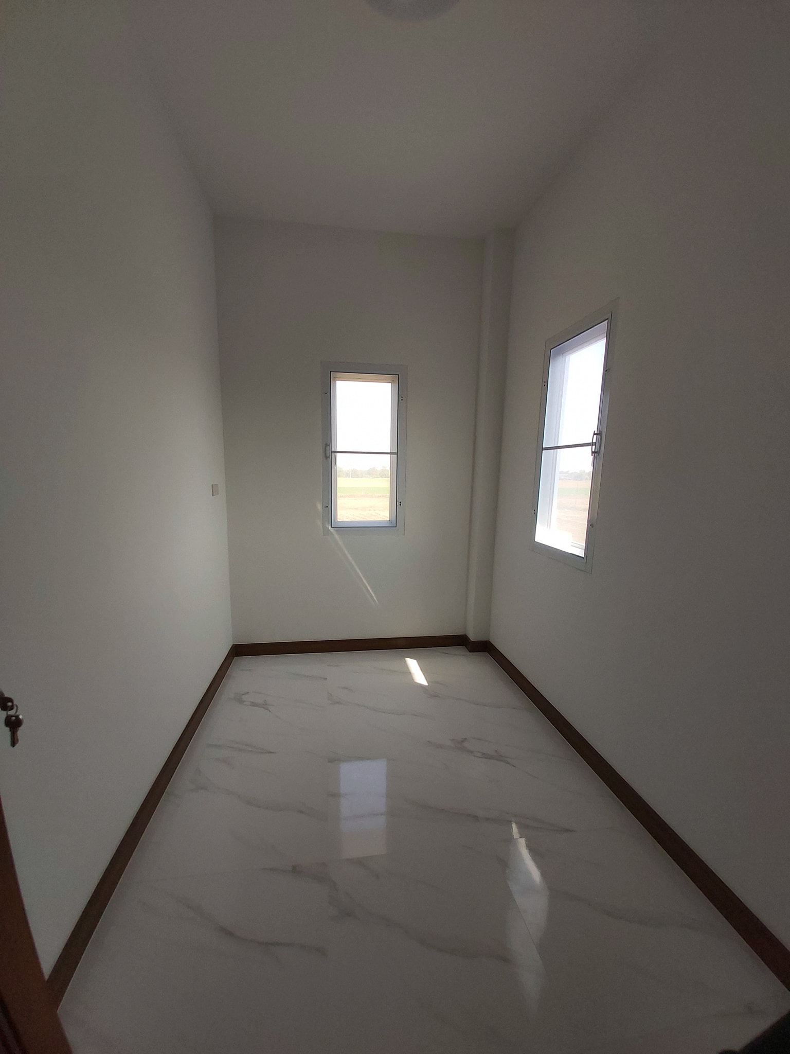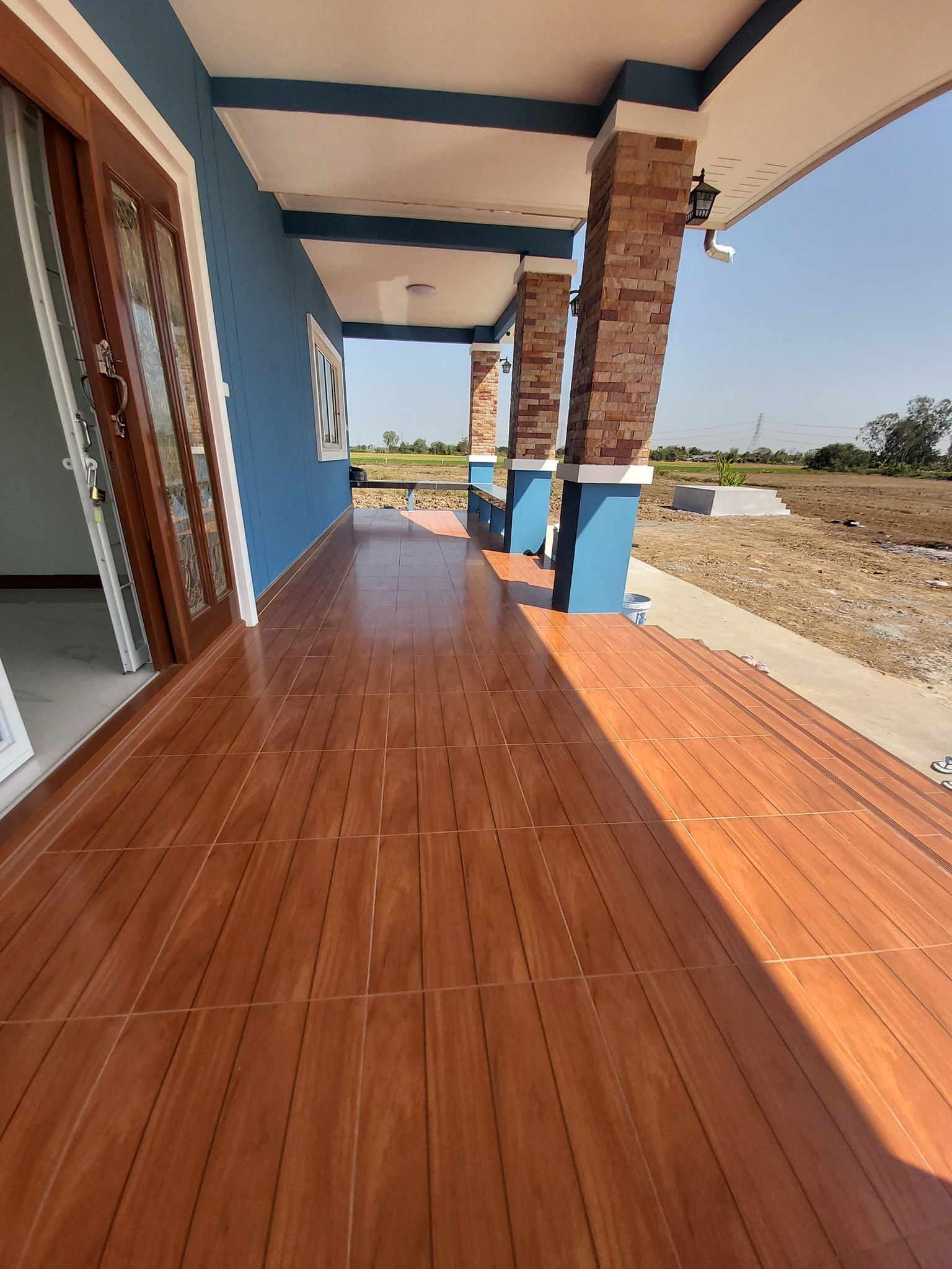 บริเวณหลังบ้านจะมีทางเข้า-ออกไว้อีกหนึ่งแห่ง พร้อมกับต่อเติมพื้นที่เฉลียงด้านหลัง จึงสามารถใช้เป็นลานสำหรับซักล้างได้อย่างสะดวก