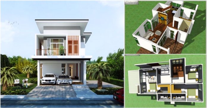 แบบบ้านสองชั้นสไตล์โมเดิร์นหลังนี้ประกอบไปด้วย 4 ห้องนอน 3ห้องน้ำ 1 ห้องนั่งเล่น 1 ห้องครัว ที่จอดรถรองรับรถยนต์ 2 คัน ระเบียงหน้าบ้าน ระเบียงห้องนอนและระเบียงส่วนซักล้างหลังบ้าน พื้นที่ใช้สอยทั้งหมดประมาณ 230 ตารางเมตร งบประมาณการก่อสร้างอยู่ที่ประมาณ 2.5 ล้านบาท