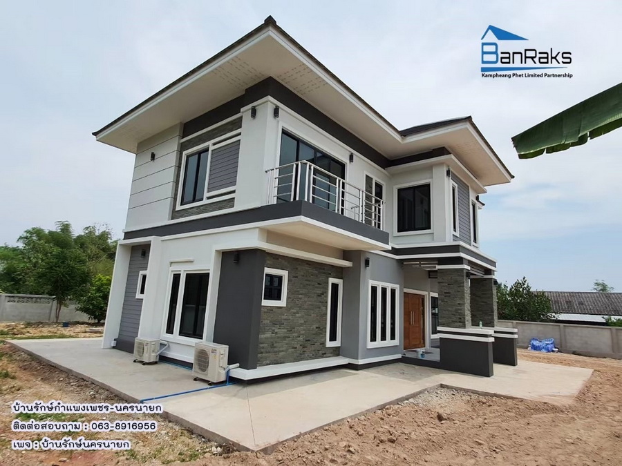 บ้านหลังนี้เป็นบ้านพักอาศัยขนาดสองชั้น ออกแบบและก่อสร้างด้วยดีไซน์และโครงสร้างที่มีความทันสมัยและมั่นคงแข็งแรง โดยรายละเอียดการตกแต่งนั้น ผนังภายนอกเลือกใช้โทนสีเทายืนพื้น เพิ่มดีเทลด้วยโทนสีขาวและดำ จึงให้ความสวยงามลงตัว