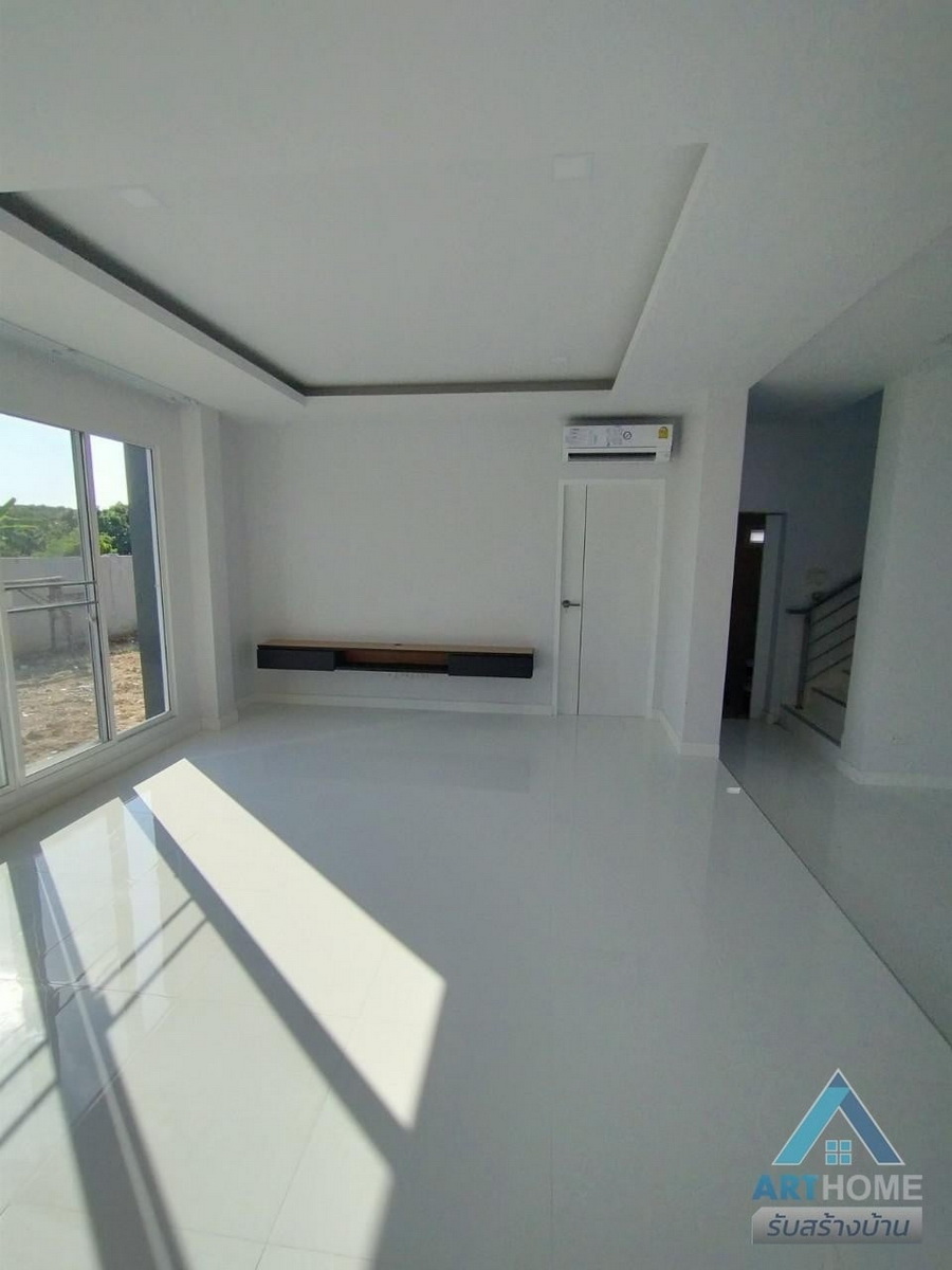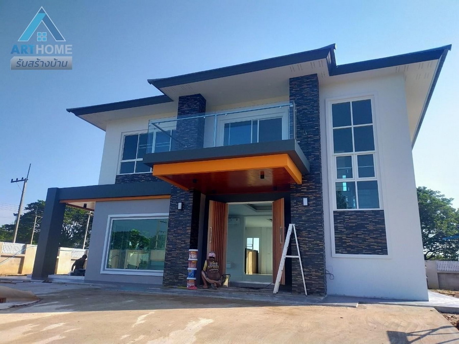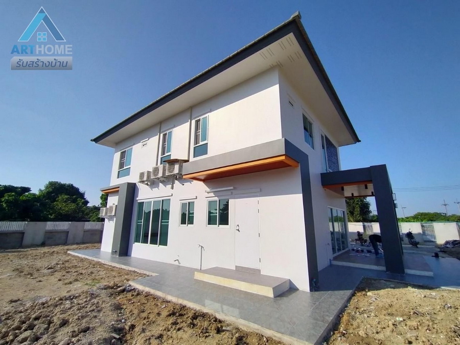 บ้านสไตล์คอนเทมโพรารี ผลงานการออกแบบและก่อสร้างโดย Art-HOME บ้านหลังใหญ่ที่มีพื้นที่ใช้สอยกว้างขวางทั้งพื้นที่ภายในบ้านและพื้นที่ภายนอกตัวบ้าน เหมาะกับครอบครัวขนาดใหญ่ มาพร้อมกับรายละเอียดการตกแต่งที่สวยงามทันสมัย