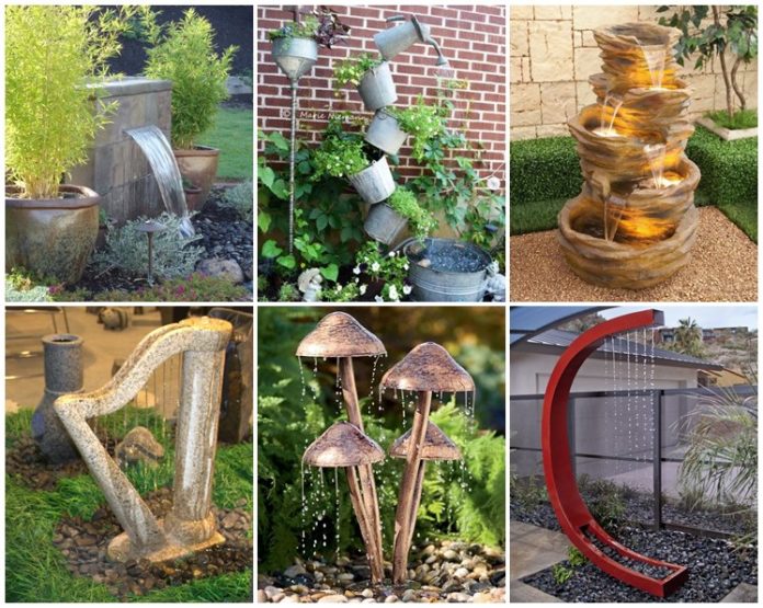 ประยุกต์จากของใช้เก่า นำมาสร้างเป็นน้ำพุ ตกแต่งร่วมกับพรรณไม้ ท่ามกลางสวนหย่อม