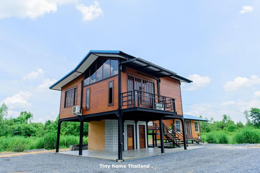 รายละเอียดบ้าน : naibann.com/wooden-knockdown-house-with-balcony-by-tinyhomethailand/