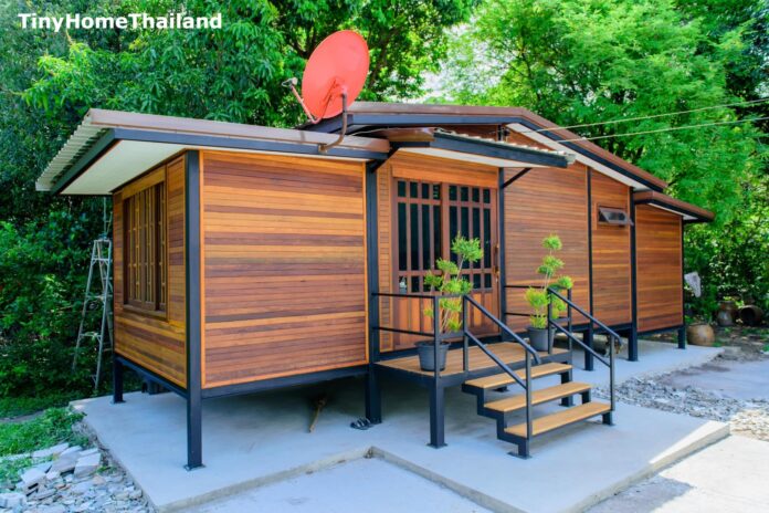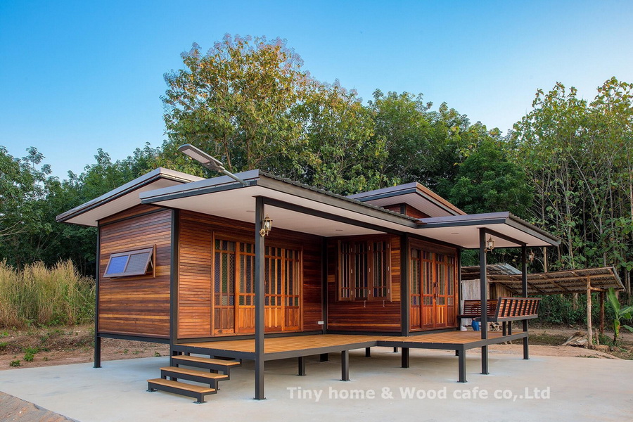 4. บ้านไม้จริงสำเร็จรูปโครงสร้างเหล็ก ขนาดกระทัดรัด เติมเต็มฝันคนทุกรุ่น 1 ห้องนอน 1 ห้องน้ำ