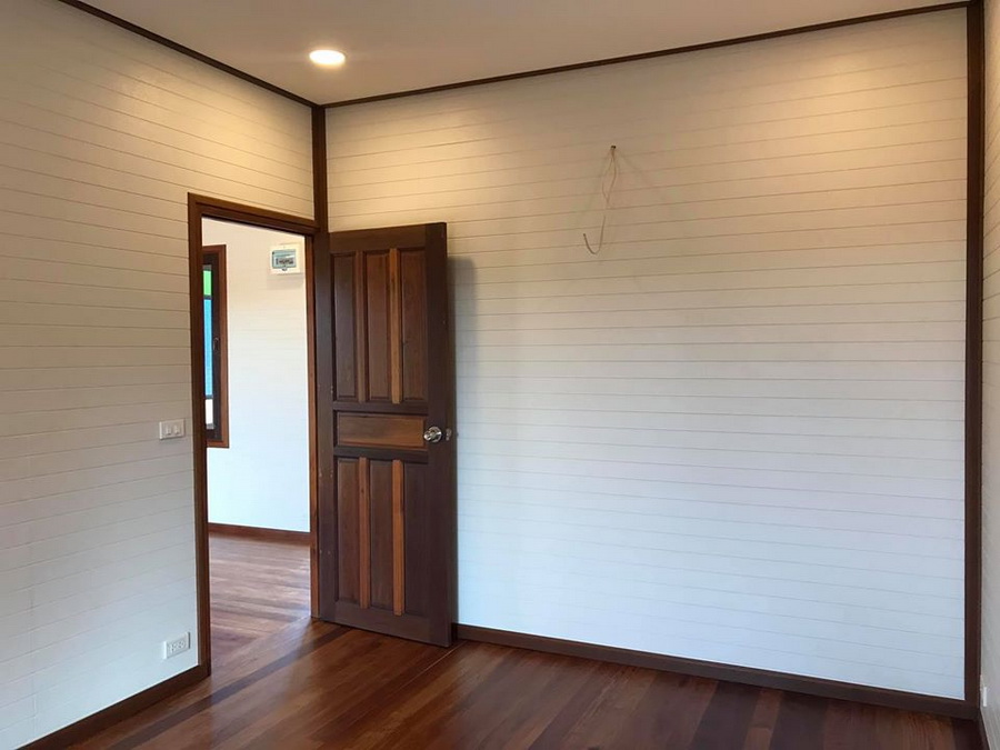13. บ้านน็อคดาวน์ชั้นเดียว ดีไซน์สวยด้วยผนังไม้สุดคลาสสิก 2 ห้องนอน 1 ห้องน้ำ พื้นที่ใช้สอย 76 ตร.ม.