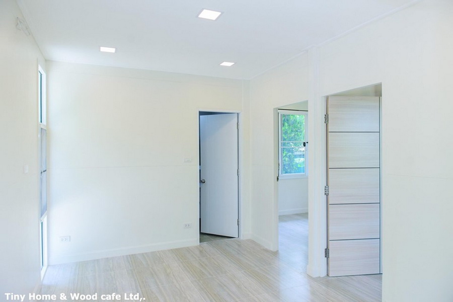 12. บ้านน็อคดาวน์ยกพื้นสไตล์โมเดิร์น ตกแต่งในโทนสีขาว 2 ห้องนอน 1 ห้องน้ำ พื้นที่ใช้สอย 42 ตร.ม.