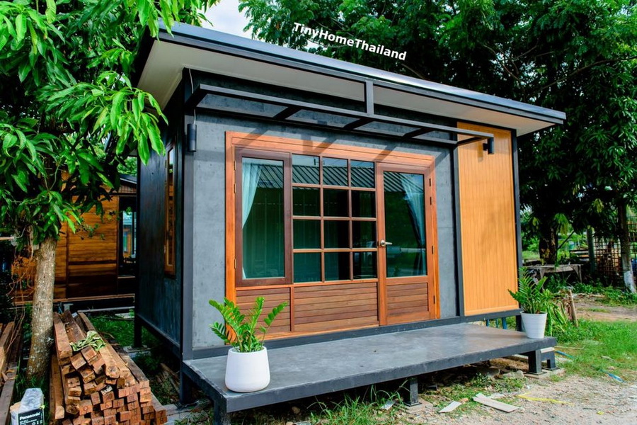 รายละเอียดบ้าน : naibann.com/small-steel-framed-wood-house-by-tinyhomethailand/
