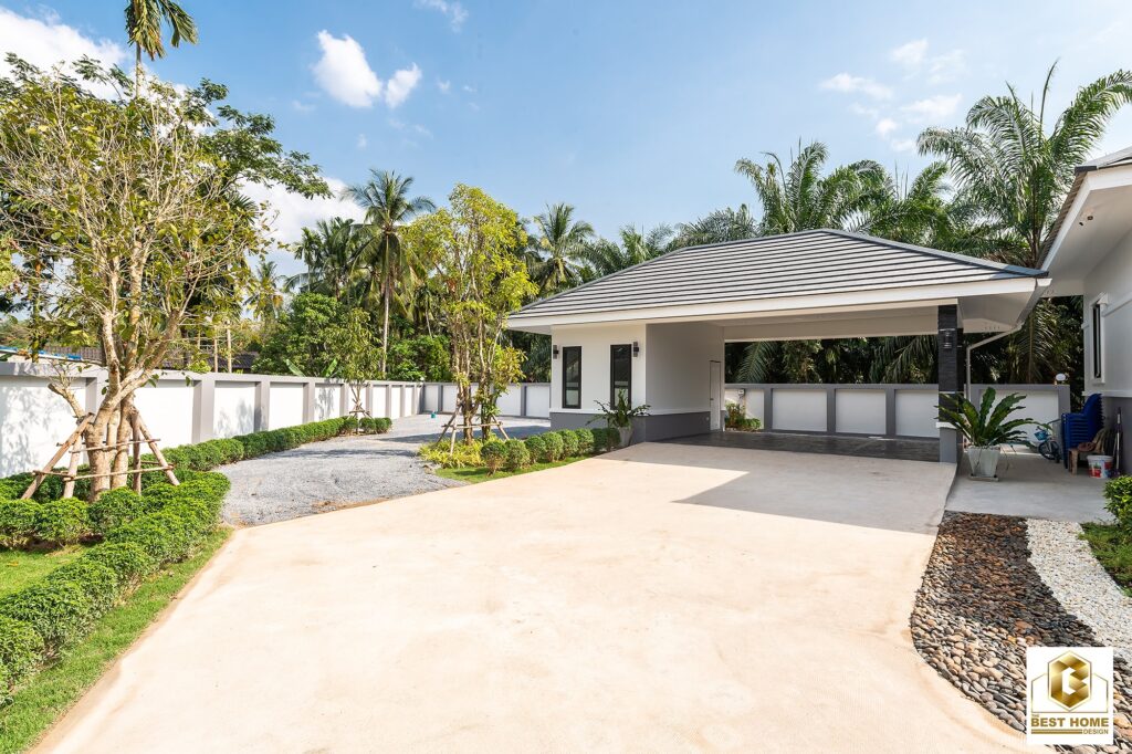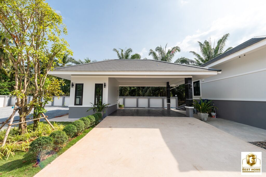ด้านซ้ายมือของตัวบ้านเป็นโรงจอดรถ มีทางเดินเชื่อมไปสู่บริเวณหลังบ้านโดยตรง