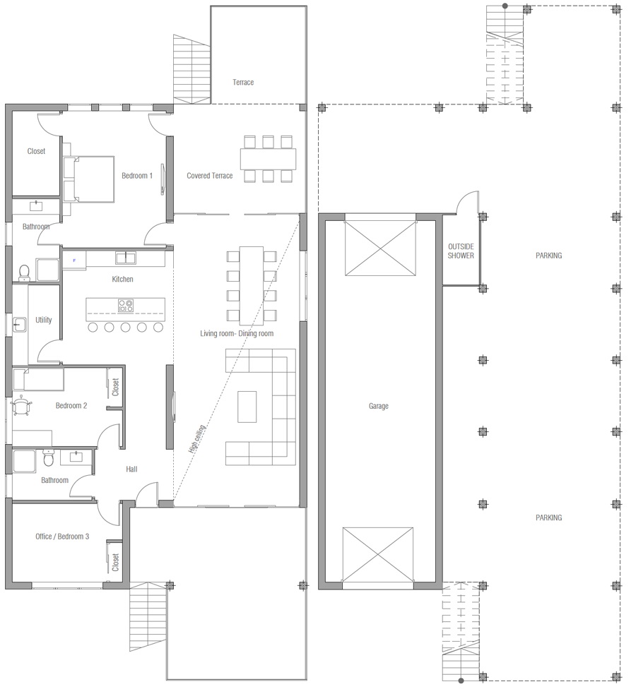 แบบบ้านโมเดิร์นเล่นระดับ ทรงกล่องโทนสีขาว 3 ห้องนอน 2 ห้องน้ำ พื้นที่ 246 ตร.ม.