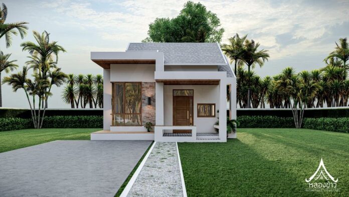 7. แบบบ้านชั้นเดียวสไตล์นอร์ดิก หลังเล็กกะทัดรัด กลิ่นอายรีสอร์ต 2 ห้องนอน 1 ห้องน้ำ พื้นที่ 75 ตร.ม.