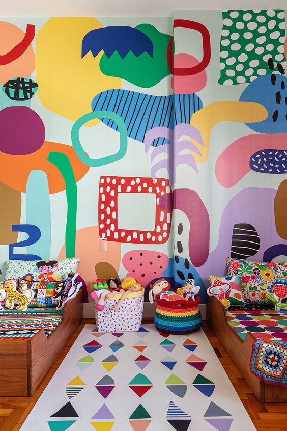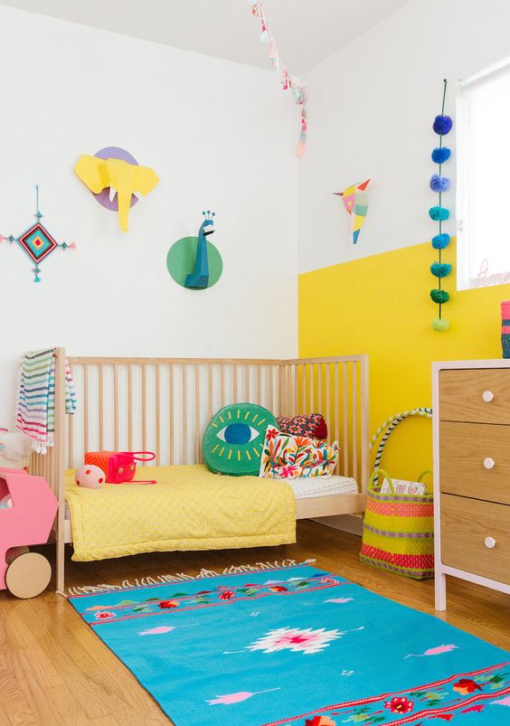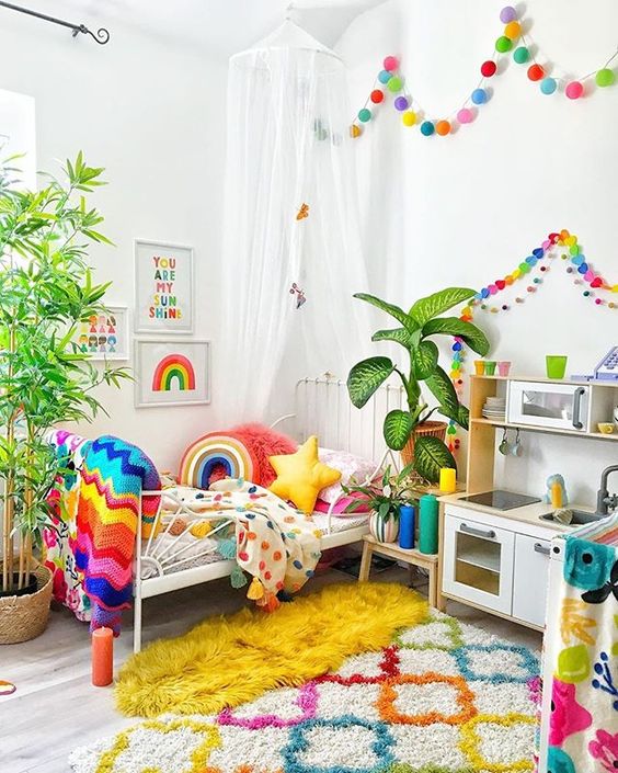 สีสันที่สดใสฉูดฉาด เป็นสิ่งที่มีส่วนช่วยในการเสริมสร้างจินตนาการและความคิดสร้างสรรค์ ซึ่งเราสามารถเลือกใช้สีสันสดใสผ่านสิ่งต่าง ๆ ให้ลูกได้ ไม่ว่าจะเป้นของเล่น ข้าวของเครื่องใช้ต่าง ๆ ที่เด็ก ๆ สามารถหยิบจับได้ นอกจากนี้ยังรวบไปถึงการตกแต่งพื้นที่ต่าง ๆ ภายในบ้าน เช่น ห้องนอน