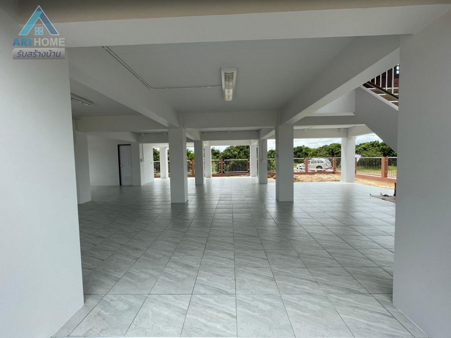 มาถึงส่วนที่เป็นไฮไลท์ของบ้านหลังนี้ คือพื้นที่ใต้ถุนบ้านที่โปร่งโล่งสุด ๆ ทำให้สามารถใช้เป็นพื้นที่กิจกรรมได้หลากหลาย หรือในอนาคตก็ยังสามารถต่อเติมกั้นห้องได้อีกด้วย