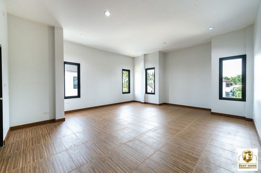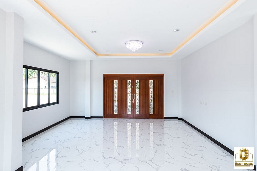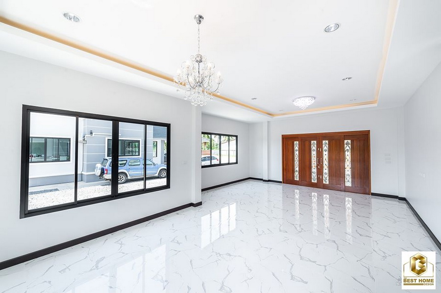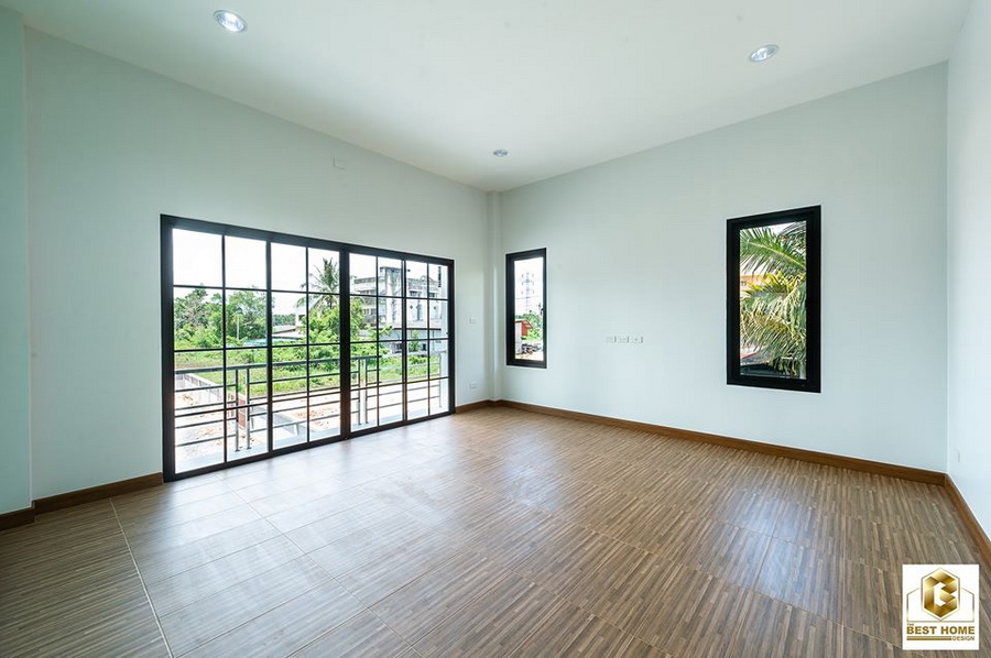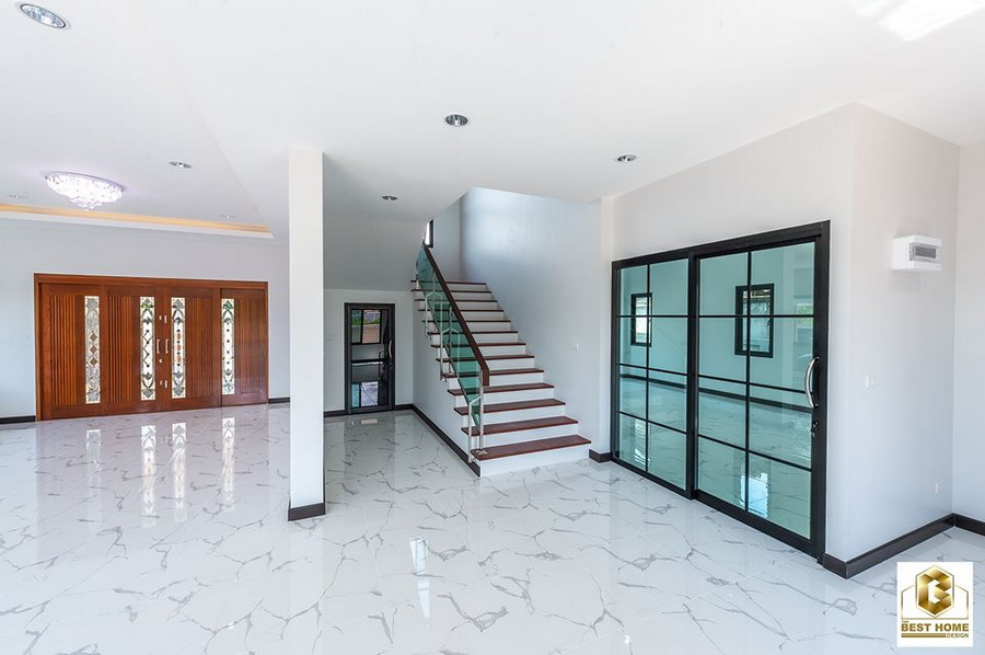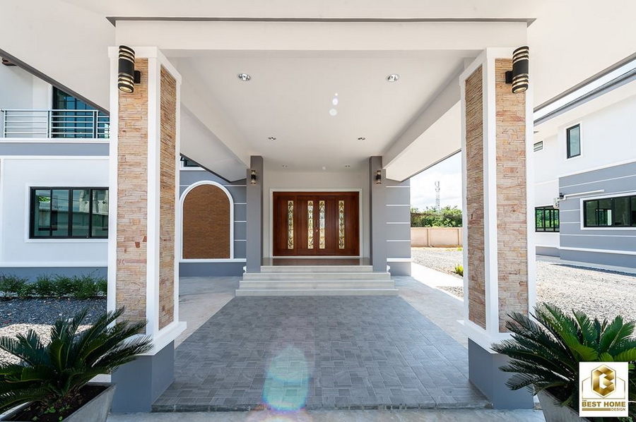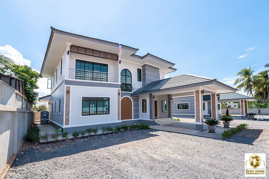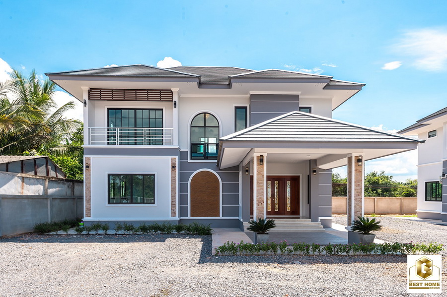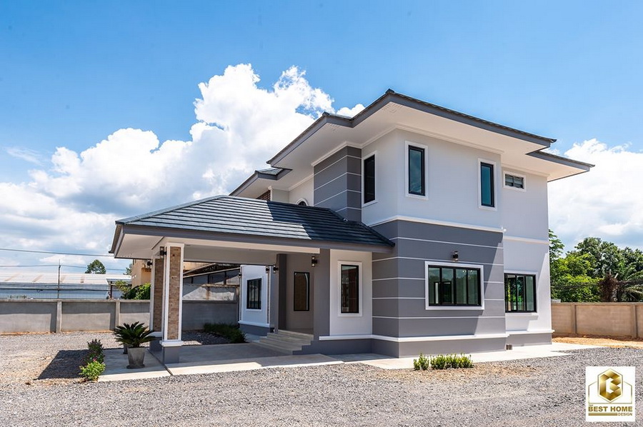 บ้านสองชั้นรูปทรงร่วมสมัย ดีไซน์หรูหราเพื่อครอบครัวใหญ่ 4 ห้องนอน 3 ห้องน้ำ พื้นที่ 260 ตร.ม.