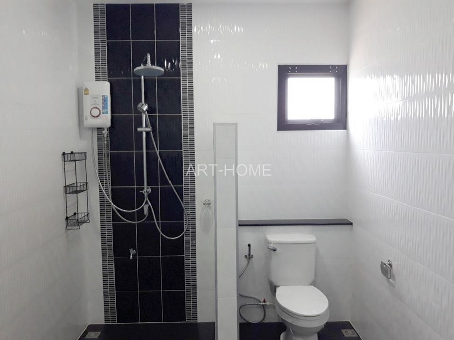 ห้องน้ำ เป็นห้องที่ถูกออกแบบเรียบง่าย ภายในตกแต่งด้วยกระเบื้องโทนสีอ่อน พร้อมกับมีสิ่งอำนวยความสะดวกที่ครบครัน