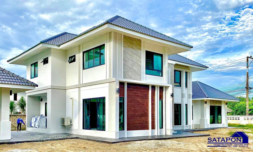 แบบบ้านสองชั้นสไตล์คอนเทมโพรารีลักชัวรี่ ผลงานการออกแบบโดยทีมงาน SATAPON...