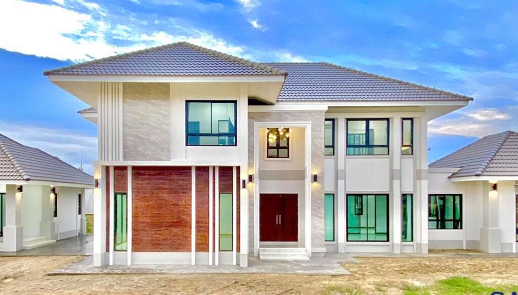 แบบบ้านสองชั้นสไตล์คอนเทมโพรารีลักชัวรี่ หรูหรา ครบครัน ทันสมัย พิถีพิถันทุกรายละเอียด พื้นที่ใช้สอย 265 ตร.ม.