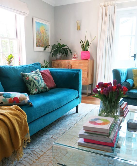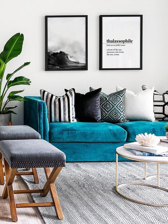 เทอร์ควอยซ์เป็นสีที่มีมนต์ขลัง ซึ่งเป็นสีที่อยู่ระหว่างสีน้ำเงินและสีเขียว โดยโทนสีนี้จะช่วยให้บรรยากาศที่สดชื่น มีความโดดเด่นและดึงดูดสายตา จึงทำให้สีเทอร์คอยซ์เหมาะกับการนำมาตกแต่งห้องนั่งเล่นภายในบ้านของเรา เพื่อบรรยากาศที่สวยงาม
