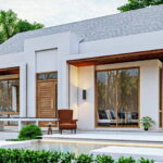 แบบบ้านหลังนี้เป็นบ้านขนาดชั้นครึ่ง ตัวบ้านมีดีไซน์แบบโมเดิร์น โดยมีรูปทรงแบบสี่เหลี่ยมที่เรียบง่าย มีหลังคาแบบเรียบที่เข้ากันได้ดีกับตัวบ้าน ผนังภายนอกเลือกใช้สีขาวครีมที่ให้ความสวยงามอบอุ่น เพิ่มความสวยงามด้วยงานไม้และผนังหินธรรมชาติ