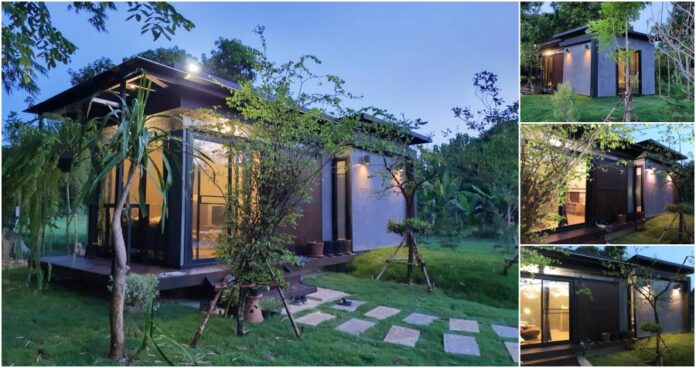 บ้านน็อคดาวน์สไตล์โมเดิร์นหลังนี้ประกอบไปด้วย 1 ห้องนอน 1 ห้องน้ำ 1 ห้องนั่งเล่น พื้นที่ใช้สอยทั้งหมด 25 ตารางเมตร งบก่อสร้างอยู่ที่ประมาณ 359,000 บาท