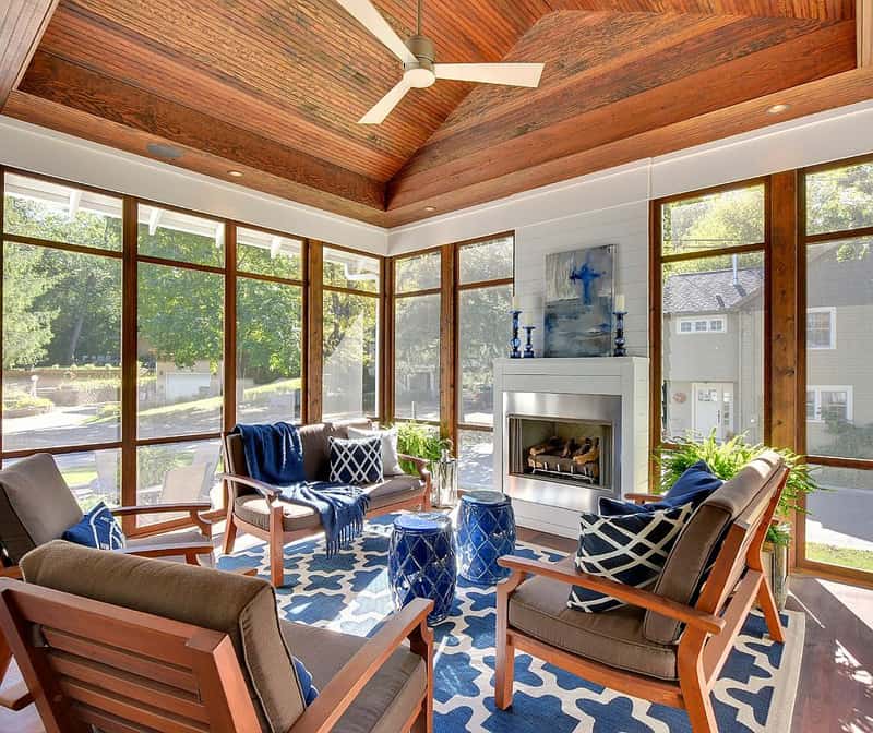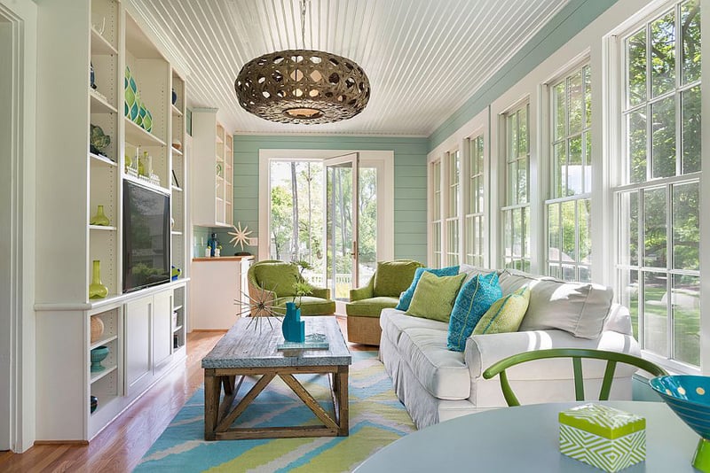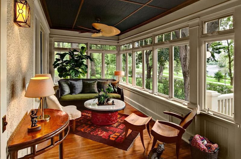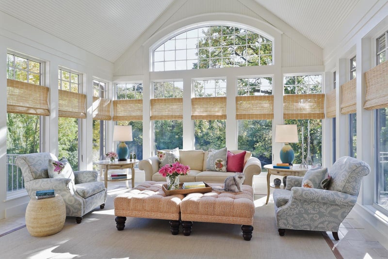 ในส่วนของเฟอร์นิเจอร์ที่ใช้ตกแต่งห้องซันรูม ควรจะเน้นเฟอร์นิเจอร์เพื่อการพักผ่อนเป็นหลัก ซึ่งโซฟานุ่ม ๆ นั้นถือว่าเป็นไอเท็มที่ขาดไม่ได้เลย นอกจากนี้ เก้าอี้อาร์มแชร์ โต๊ะกาแฟสวย ๆ รวมไปถึงโคมไฟต่าง ๆ ก็เป็นส่วนที่ช่วยเพิ่มบรรยากาศอันอบอุ่นให้ห้องซันรูมของคุณได้